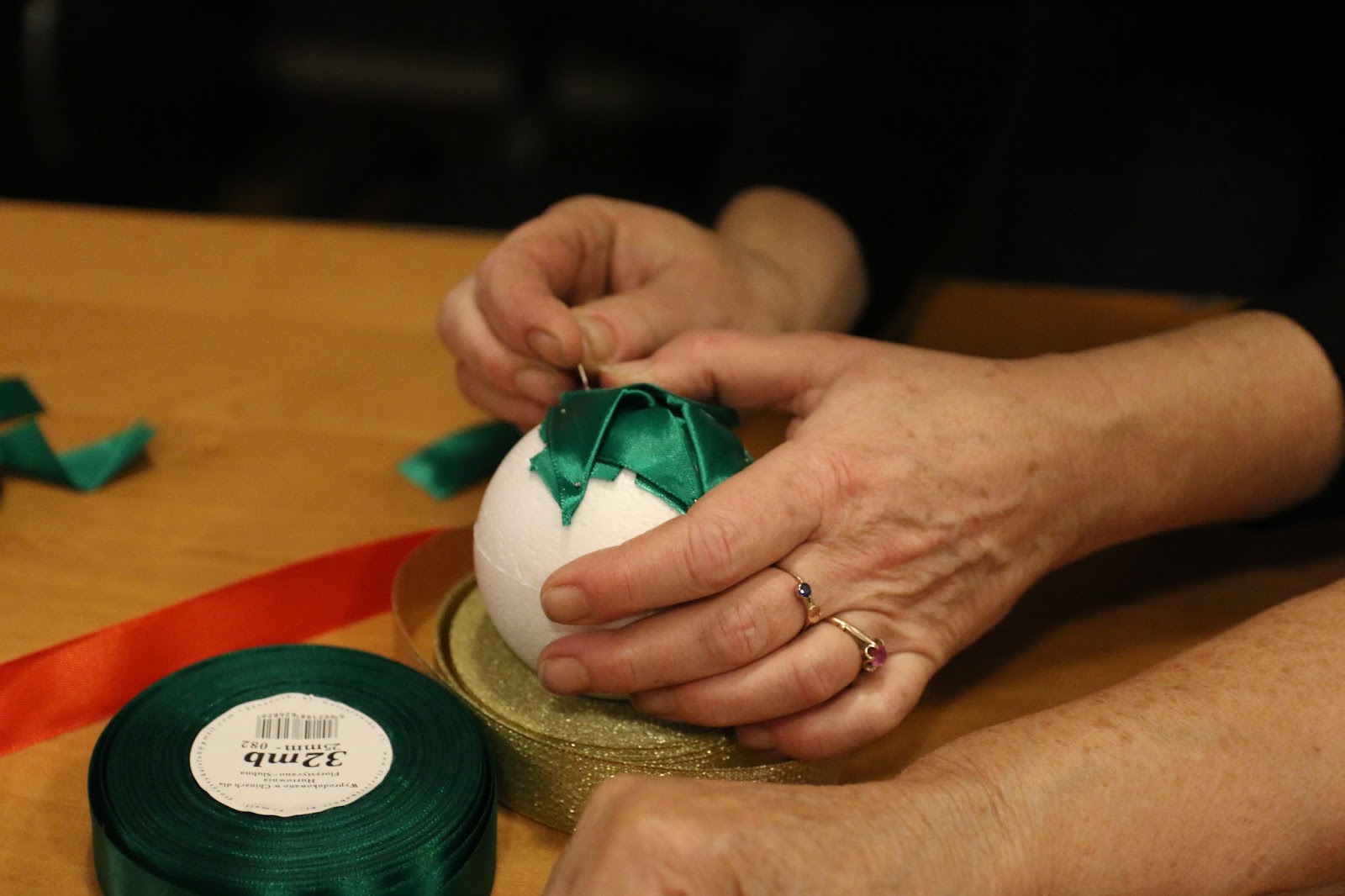 Podczas spotkania odbyły się warsztaty rękodzieła gdzie każdy z fantazją i skupieniem tworzył świąteczne stroiki, bombki.
